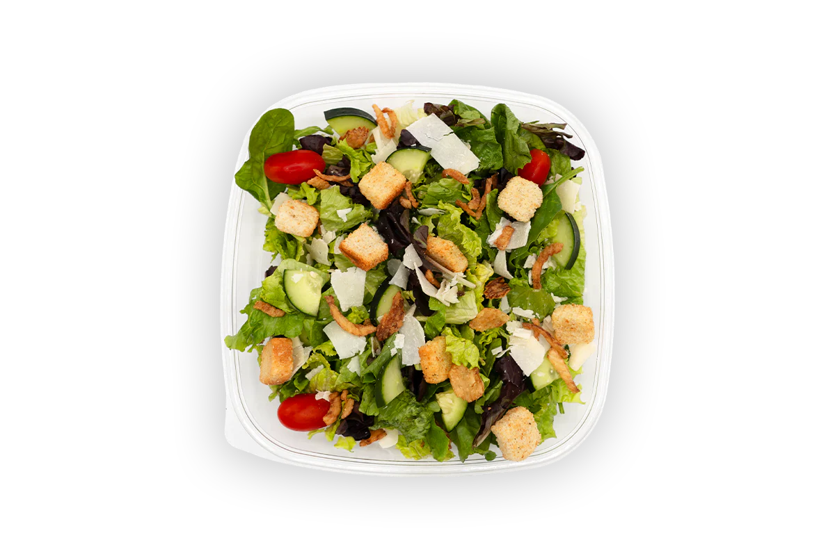 Freshly cut cucumbers, grape tomatoes and a premium Asiago, Parmesan & Romano shaved cheese blend atop a blend of green leaf lettuce, baby spinach & tender red leaf lettuce. Topped with your choice of Bojangles’ juicy grilled chicken, signature Supremes, or Bo Bites, along with seasoned croutons and your choice of dressing (House-made Ranch, Honey Dijon Dressing, or Light Balsamic Vinaigrette).